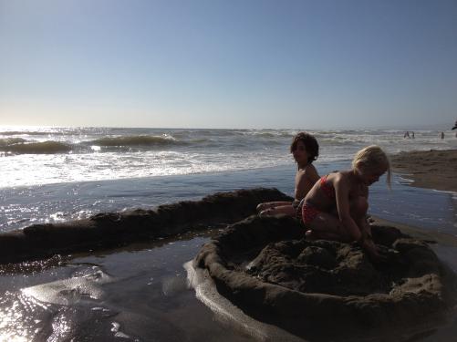 Am Meer kann man große Sandburgen bauen, denn es gibt dort viel Sand.